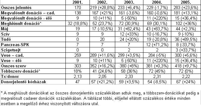 Az Egészségügyi Minisztérium megalapította a Hungarotransplant Kiemelten Közhasznú Társaságot a szervtranszplantációs riadók koordinálására . A szervezet működése kapcsán nőtt a donorjelentő kórházak-, a donorjelentések-, a megvalósult donációk, ezáltal a szervátültetések száma is.
